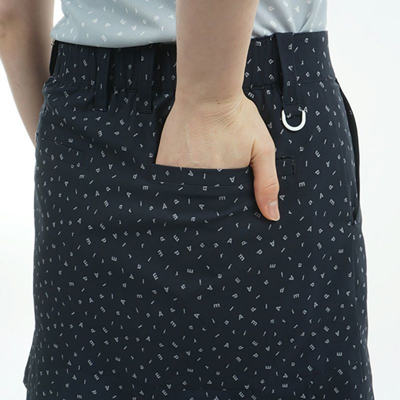 商品説明 撥水性とストレッチ性を備えた軽量タフタ素材を使用したスカート。 ブランドイニシャルをランダムに散りばめたダンシングロゴプリントが特徴的で、楽しいデザインとなっています。 裾の配色やロゴ、バックプリーツがデザインのポイントです。ウエストベルトの裏側には吸水速乾メッシュ素材を使用しており、腰回りを快適に保ちます。