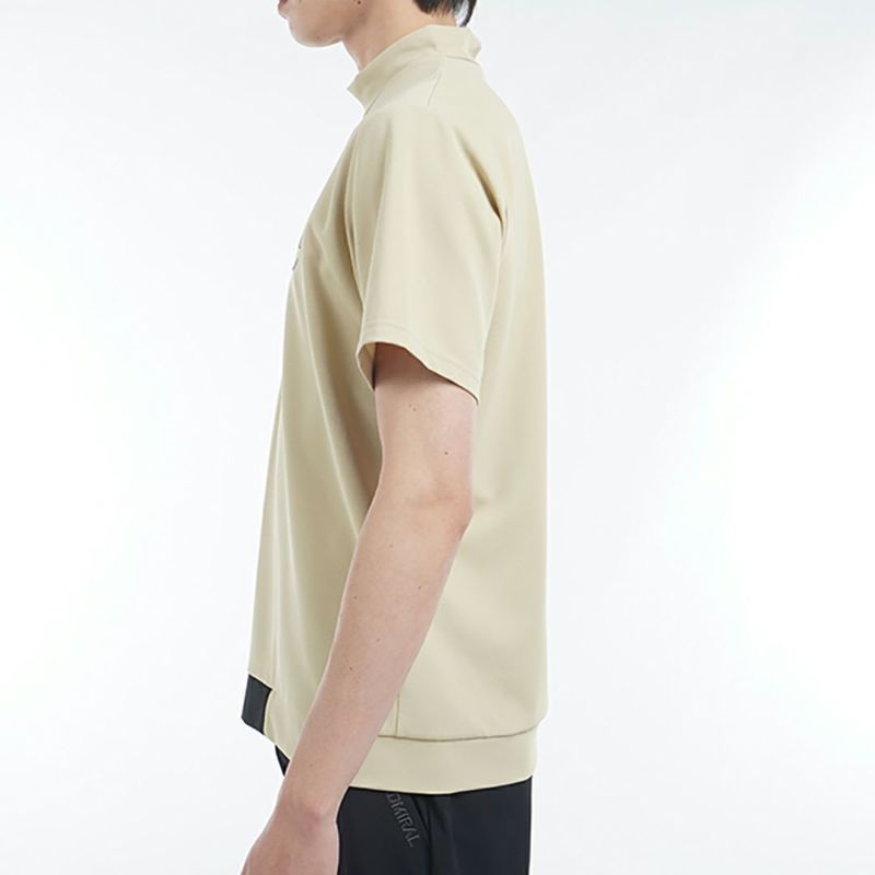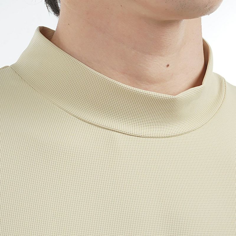 商品説明 接触冷感機能を備えたミニワッフル素材のモックネックシャツ。 薄手で肌離れが良く、通気性に優れた快適な着心地を提供します。ストレッチ性があり、UVカット機能も備えています。 少しゆったり目なシルエットと裾のエンボスロゴ加工が特徴です。