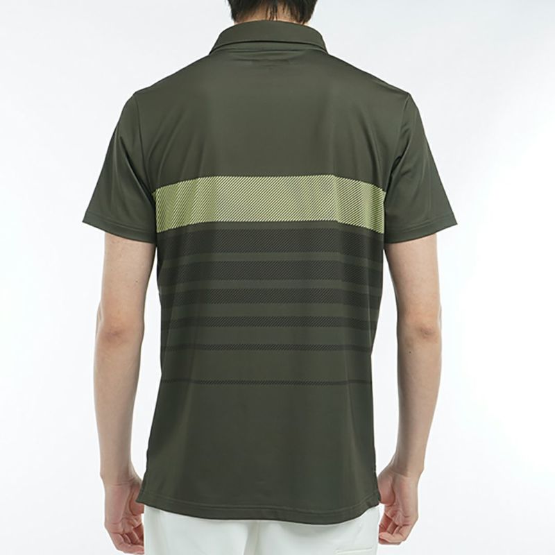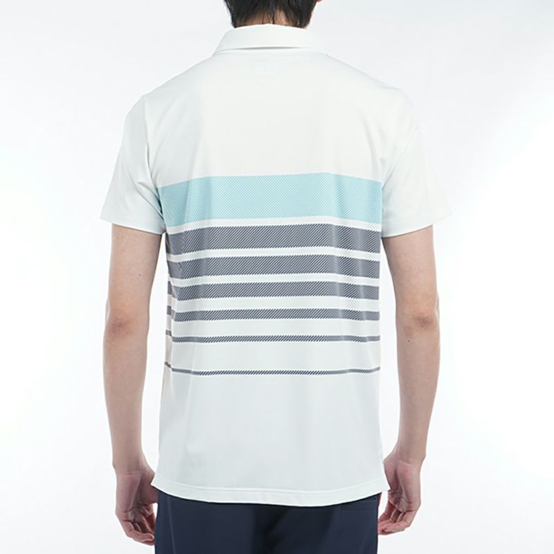 商品説明 吸水速乾性とUVカット機能を備えたポリエステル天竺素材を使用し、グラデーションボーダープリントシャツ。 異なる太さのボーダーがグラデーション状に配置され、爽やかな印象を与えます。 ストレッチ性に優れた生地で、アクティブなゴルフシーンに適した快適な着心地を提供します。