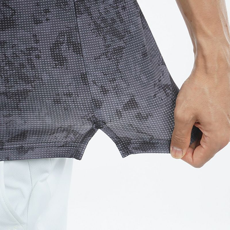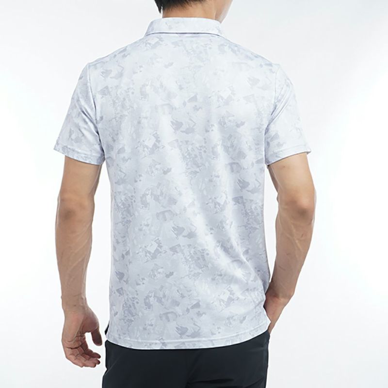 商品説明 裏面にナイロンを使用した2層素材で、肌に触れるナイロンの冷感性が特徴のローラーカモフラージュプリントシャツ。 吸水速乾、ストレッチ、UVカット機能を備えており、暑い季節でも快適に過ごせます。ローラーペイント風のカモフラージュ柄が夏らしい印象を与え、胸の光沢感のあるロゴが大人っぽいデザインです。 台衿付きのシャツで、スタイリッシュな印象を演出します。