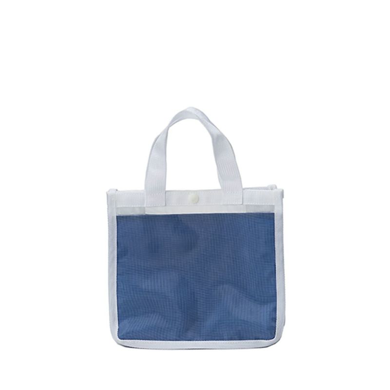 商品説明 メッシュ素材で作られた非常に軽量なラウンドトートです。内側の生地色が透けて見えるのが特徴です。シンプルなデザインでありながら、内部には3つの仕切りがあり、収納力に優れています。底部分がメッシュ素材なので、冷たい飲み物を入れた際の結露も気になりません。機能性を重視したデザインで、日常使いからアウトドアまで幅広く活躍します。