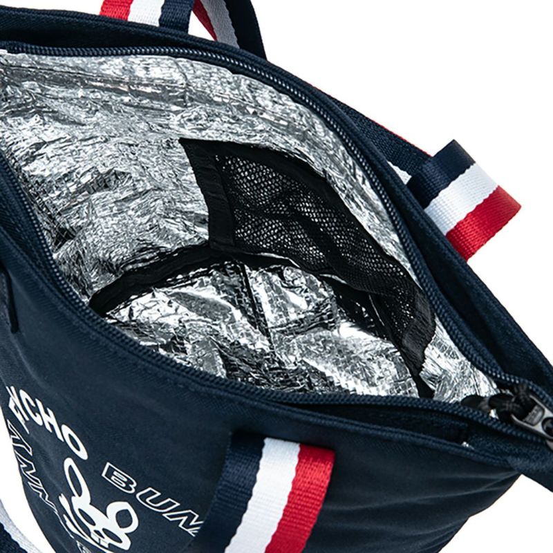 商品説明 厚めのポリエステル生地を使用したシンプルな保冷バッグです。丸型のバニーマークとトリコロールテープが特徴的なデザインです。600mlペットボトルを4?5本収納できる大容量です。内側には保冷剤を入れられるメッシュポケットが付いており、飲み物や食品を長時間冷たく保つことができます。使い勝手の良い機能性とシンプルなデザインが特徴で、アウトドアやピクニック、レジャーに最適なアイテムです。