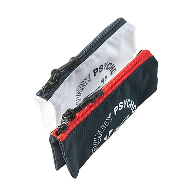商品説明 硬めのポリエステル生地を使用した多機能ポーチです。丸型のバニーマークとトリコロールテープが特徴的なデザインで、使い勝手の良さを演出します。このポーチは、2つのポーチを1つに結合したり、分離して2つの独立したポーチとして使用したり、2つ折りにすると仕切りがあるポーチに変形します。ボールやティー、マーカーを収納するのに最適なサイズで、ゴルフ場でのアクセサリー整理に便利です。シンプルでありながらも機能性に富んだデザインで、多彩な用途に対応します。