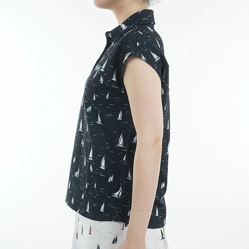 商品説明 UVカット機能を備えた柔らかいジャージー素材を使用した、フレンチスリーブシャツ。 特徴的なサッカー調のしぼ感が、シンプルでありながら上品な印象を与えます。セーリングをイメージしたヨット柄で、アクセントとしてミラーボタンが施されています。 肩を隠せるフレンチスリーブは、縦長のラインを強調し、スタイルを良く見せます。背中のタックとゆったりとしたサイズ感により、肌離れを配慮し、快適な着心地が提供されます。 暑い夏にノースリーブには抵抗のある方へ、おすすめの一枚です。 同柄のスカートとセットアップコーデもお勧めです。メーカー品番:THLA520