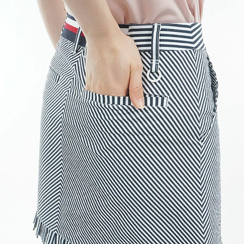 商品説明 肌離れが良く、ドライタッチなサッカー素材を使用した、ミニフリルスカート。 パネル調のストライププリントが夏らしく、裾に施されたミニフリルがフェミニンな雰囲気を引き立てます。ウエスト部分は伸縮性のあるゴム切替えを採用しており、着用時のストレスを軽減。ストレッチ性のある素材で、快適な動きやすさも確保されています。 同柄のトップスと合わせ、セットアップコーデもお勧めです。メーカー品番:THLA525