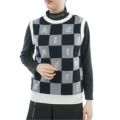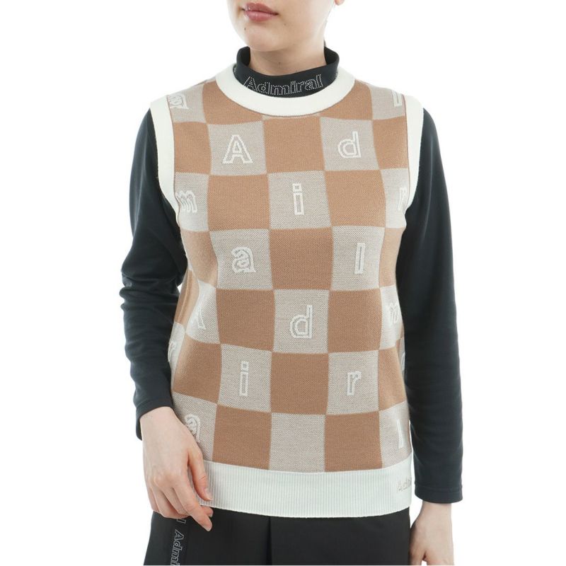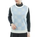 チェッカーフラッグとロゴイニシャルモチーフを凹凸で表現したジャカード編みのニットベスト。通気性と軽量性を高めるため、極細のスパークナイロン糸を組み合わせています。静電気の発生を抑えるリンキング糸を使用し、快適な着用感を実現しています。編み地にはファンシーヤーンを採用し、やわらかな印象に仕上げました。起毛感の少ないライトな質感で、季節の変わり目やレイヤードスタイルに適しています。裾には控えめなシルバーラメのロゴ刺繍を配しています。