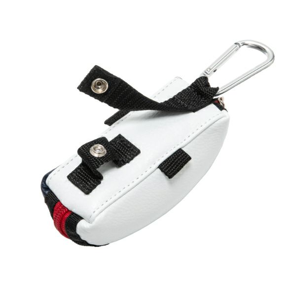 オーソドックススタイルのボールポーチ。ボール3個収納。ベルトループとナスカン装備。左右2箇所のティー刺し付き。