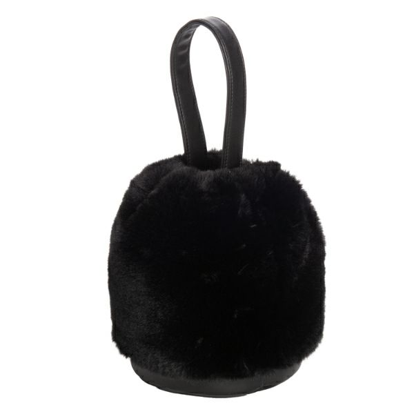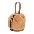 手触りの良いファーを使用した、巾着型ポーチです。持ち手には合皮を使用し、甘すぎないデザインになっています。