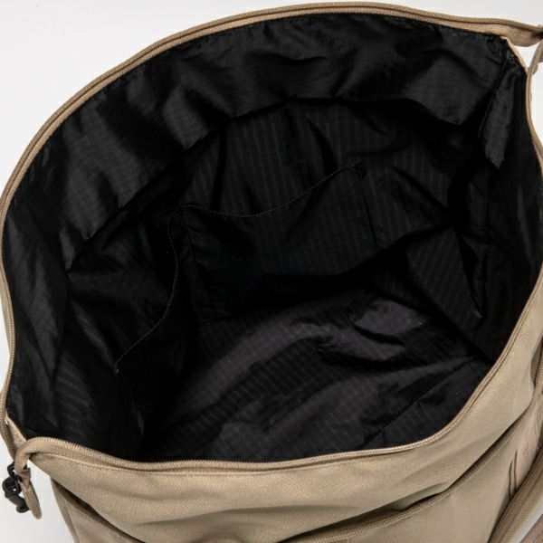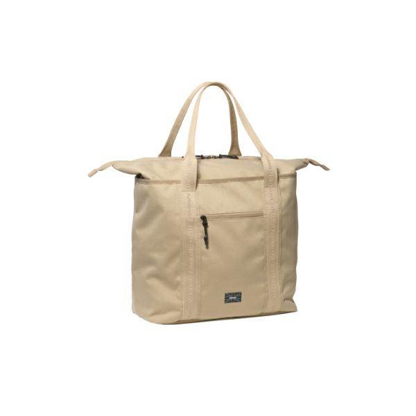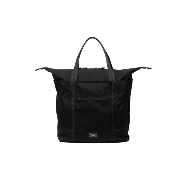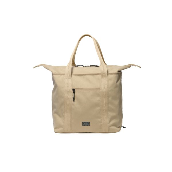 バッグ上部は容量によって調節可能な2WAY仕様、ロゴが織り込まれたテープは目立ちすぎず持つ人を選ばない。
