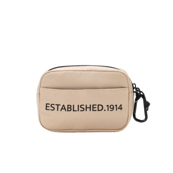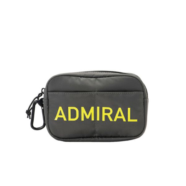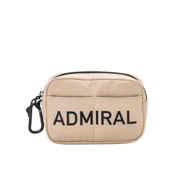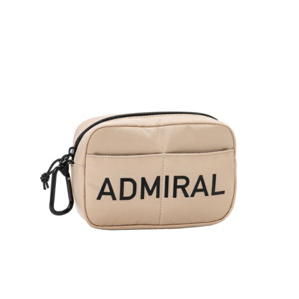 ビッグロゴが特徴のゴルフポーチです。カラビナがついて、持ち運びも便利。
