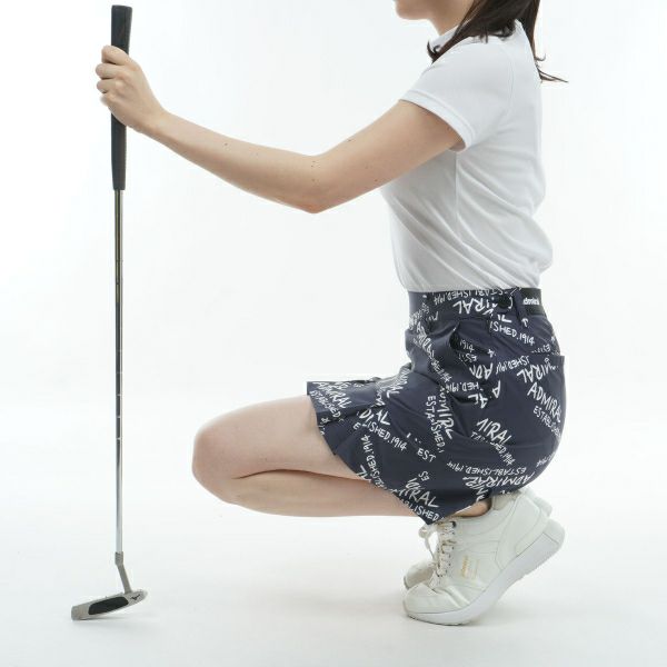 商品説明 撥水性とストレッチ性に優れた軽量タフタを使用。気分が上がるランダムなロゴプリントを全体に施しました。ヒップに沿うスッキリとしたシルエット、裾部分は足さばきの良いプリーツデザインです。ランダムな柄がプリーツを目立たせないので甘くなり過ぎずおすすめです。バックウエストはゴムシャーリング仕様でウエスト回りも締め付けを軽減した、ストレスフリーな着用感です。ADLA431シャツと共通の柄を使用しています。