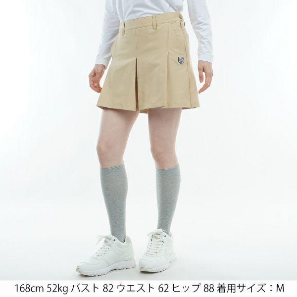 商品説明 撥水加工のストレッチ素材を使用した、ボックスプリーツと4WAYストレッチが特徴のキュロット。フロントのボックスプリーツがクラシカルな印象を与え、バックスタイルも気にせず安心してプレイできます。バックウエストは伸縮性のあるロゴジャカードゴムで、ストレスフリーな着用感を提供します。ベルトループと前後計4つのポケットを装備しています。★アドミラルゴルフの高機能ウェアの特集ページはこちら