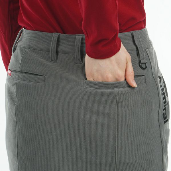 商品説明 裏起毛、蓄熱保温、ストレッチ素材を使用したハイテンション裏起毛スカート。裏面起毛が温かさを提供し、抜群のストレッチ性でプレイに最適な素材です。表面はコーデュロイに似た縦畝のある素材感で、見た目にも暖かみを感じます。タイトなシルエットがスタイルを良く見せ、厚手のトップスともバランスが取りやすいデザインです。ウエストは生地本来のストレッチ性があり、窮屈さを感じにくい着用感です。ベルトループと前後計4つのポケットを装備しています。