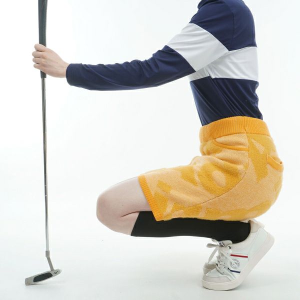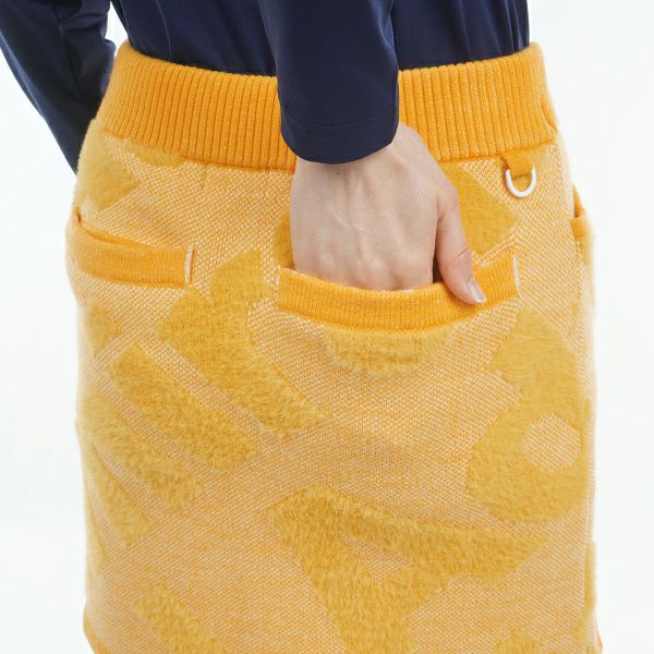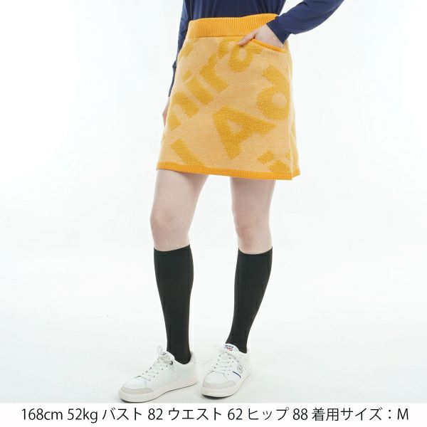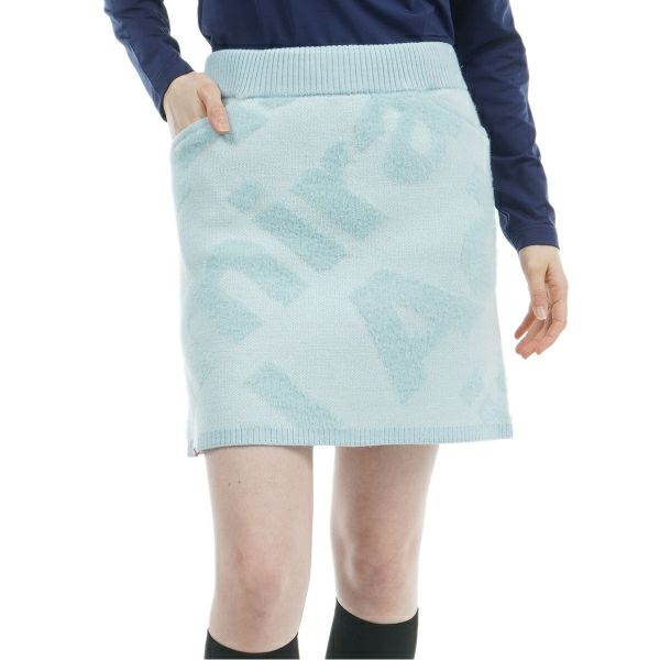 商品説明 フェザーヤーンを使用した肉厚なジャカードニットで、寒い季節にぴったりのフェザーロゴツイーディースカート。見た目にも暖かく、毛足のあるフェザーのロゴとツイードライクなミックス感が新鮮です。インパクトのあるロゴがグリーンにも映えます。 同柄のセーター(ADLA487)とセットアップで合わせて、暖かくプレイを楽しめます。前後計4個のポケットが装備されており、プレイ中も安心です。