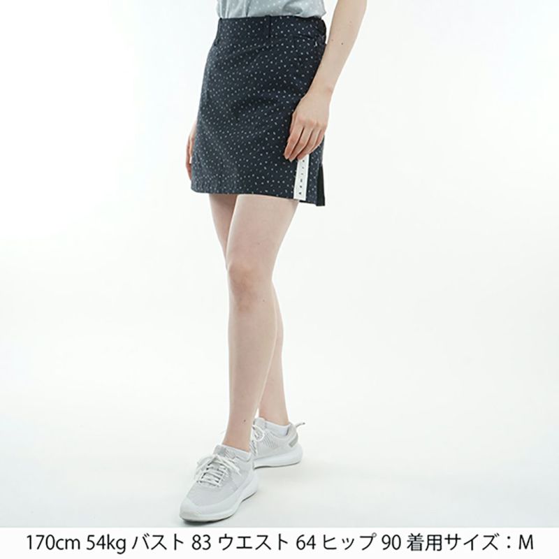 商品説明 撥水性とストレッチ性を備えた軽量タフタ素材を使用したスカート。 ブランドイニシャルをランダムに散りばめたダンシングロゴプリントが特徴的で、楽しいデザインとなっています。 裾の配色やロゴ、バックプリーツがデザインのポイントです。ウエストベルトの裏側には吸水速乾メッシュ素材を使用しており、腰回りを快適に保ちます。
