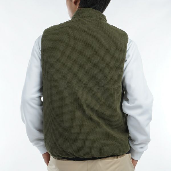 商品説明 撥水加工のタフタ素材とブラック型のボアフリースを組み合わせたリバーシブルベスト。タフタ面は軽量の中綿をキルティングし、保温性も抜群です。ブロック型のボアフリース面は見た目にも暖かく、カジュアルコーディネイトにもぴったりです。