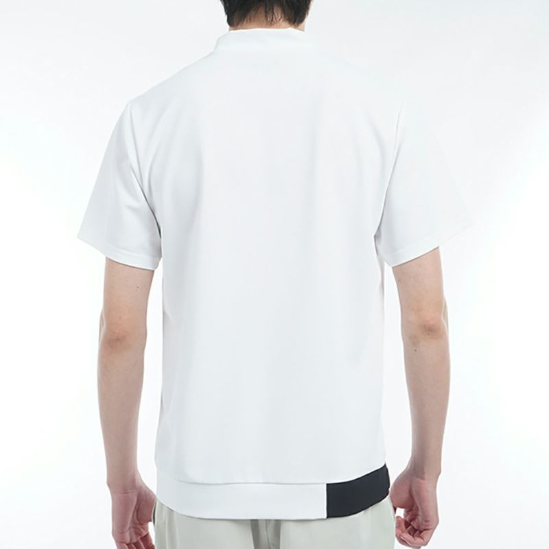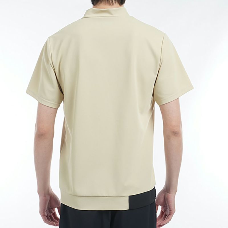 商品説明 接触冷感機能を備えたミニワッフル素材のモックネックシャツ。 薄手で肌離れが良く、通気性に優れた快適な着心地を提供します。ストレッチ性があり、UVカット機能も備えています。 少しゆったり目なシルエットと裾のエンボスロゴ加工が特徴です。