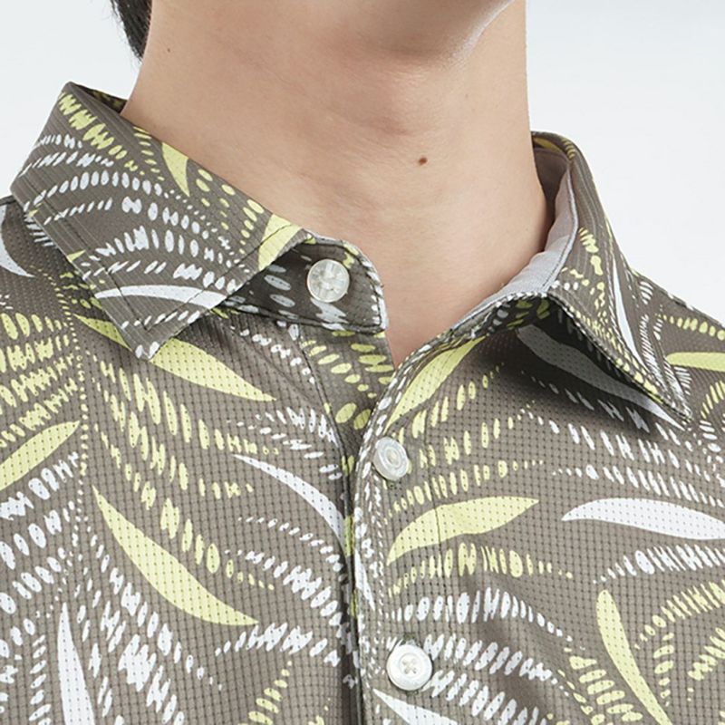 商品説明 通気性の良いメッシュ素材を使用し、カットソーの快適な着心地と軽さを提供する、プリントシャツ。 ストレッチ性もあり、動きやすさが確保されています。夏らしくリゾート感を演出するリーフプリントが特徴のシャツです。