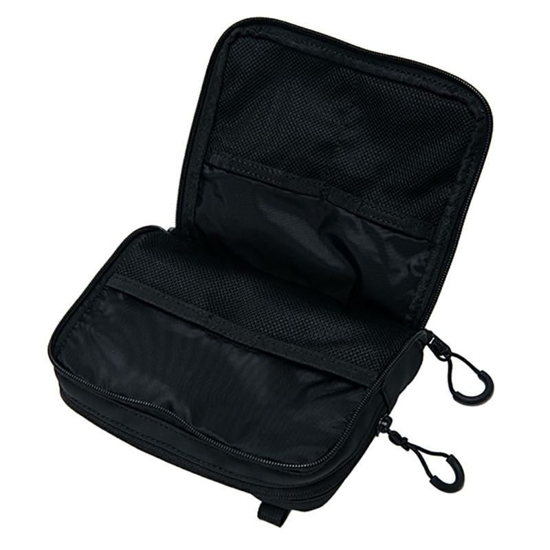 商品説明 突然の雨にも対応するコーティングポリエステル素材を使用したポーチです。フロント部分が大きく開き、マーカーやティー、スコアカードなどを収納可能なマルチポーチです。容量の大きい本体ポケットはボールや日焼け止めなど、厚みのあるアイテムも簡単に収納できます。