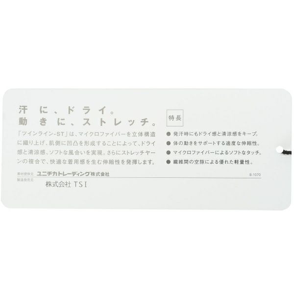 ポリエステルにもかかわらず、マイクロファイバーを立体構造に織り上げたソフトな風合い、適度なストレッチ性を確保し、凹凸構造により肌面もドライにキープする、ユニチカのストレッチ素材のツインラインSTを使用しています。サイドからバックパネルに通気性の良いメッシュを配置し、緩やかにカーブをつけて頭のラインに沿わせたスポーティーなシルエットが特徴です。