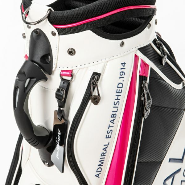 商品説明 Admiral小平智プロ、堀琴音プロが使用するレプリカモデル。口枠側面両サイドには持ち運びしやすいハンドルがあります。ポケットが豊富で両サイドには大容量保冷、背面上部は貴重品、正面上部にはマグネット式開閉のポケットを採用。フードはフルオープンファスナー。彫刻可能なネームプレート付き。口枠5分割。ボトムハンドル付き。セパレーター3分割。3点ショルダー。