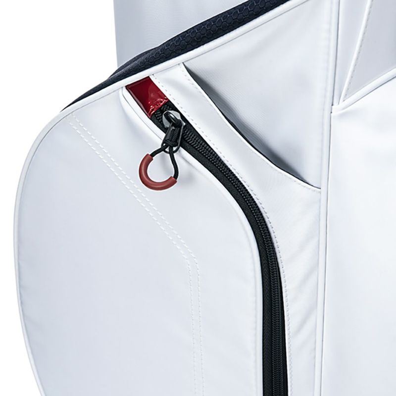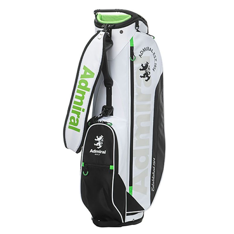 商品説明 スタンドタイプの軽量キャディバッグ。撥水ポリエステルとハニカム織りポリエステルを組み合わせた耐久性のある素材を使用し、Admiralのマスターロゴとランパントを組み合わせたスポーティーなイメージ。9型口枠5分割セパレーター数3分割でクラブの整理がしやすく、アクセサリーポケットとペットボトルポケットを備え、合計6つのポケットが用意されています。
