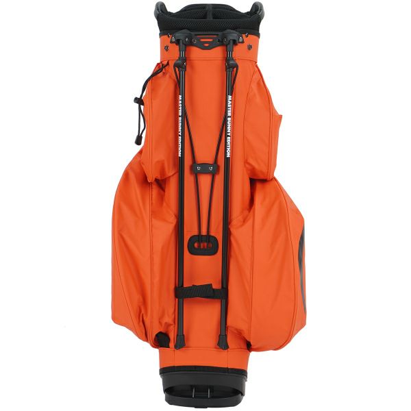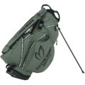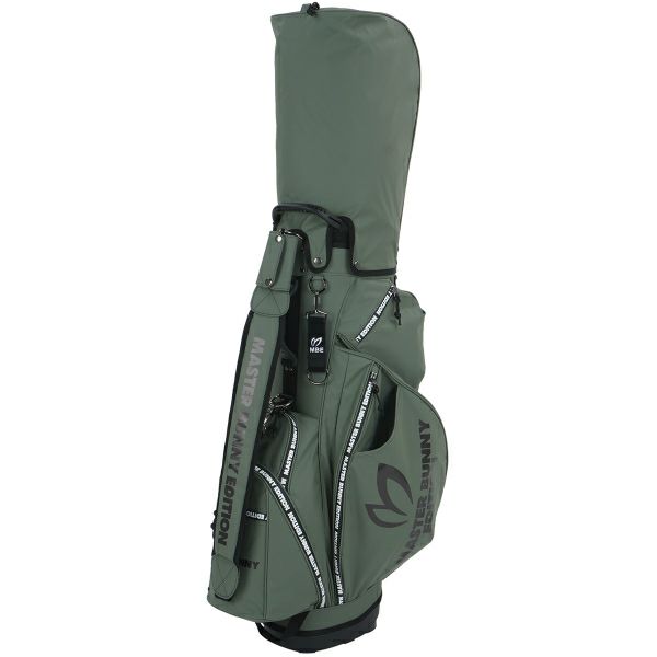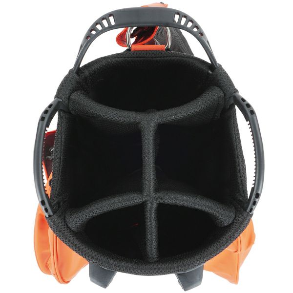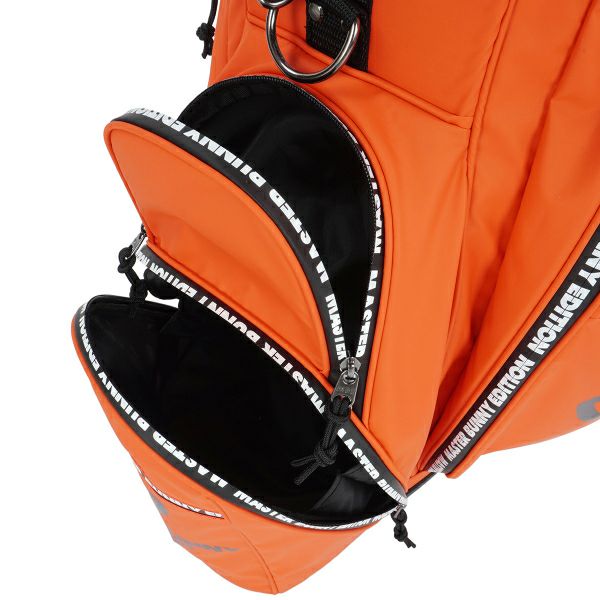 バランスのとれたクラブ収納と出し入れを可能にする、ハンドルと一体型の5分割の口枠を採用。グローブホルダーやバッグチャームとして使える、取り外し可能なベルクロ仕様のチャームを装備。ベルトループに付けて、パターの際に外したグローブを取り付けるなどの使い方ができるのもポイントです。また、ショルダーベルト、ネームプレート、ティー挿しの付属と、十分なマチ付きの便利なサイドポケットや前側下部のポケット、保冷裏地を使用したドリンク収納ポケットなど、大小様々な機能的なポケットを8箇所に配置した収納力抜群のバッグ。