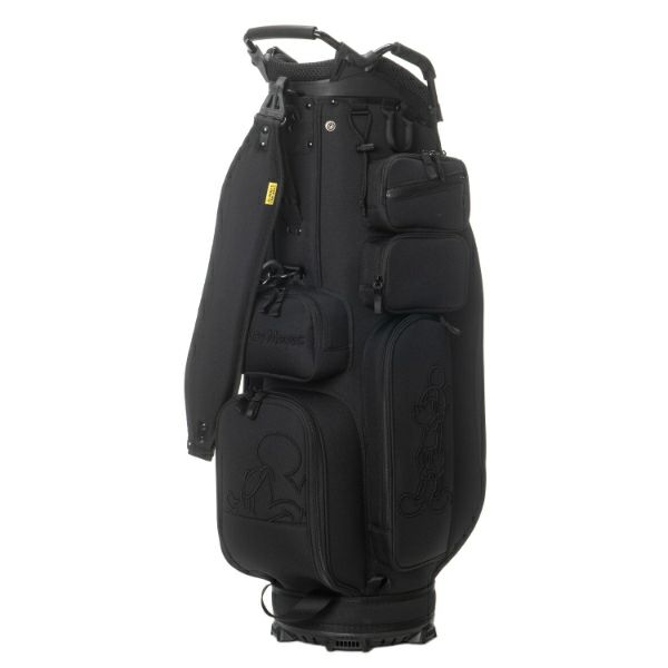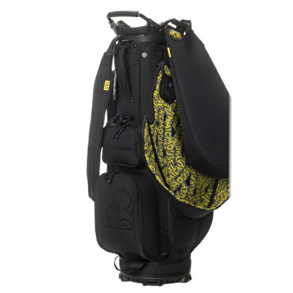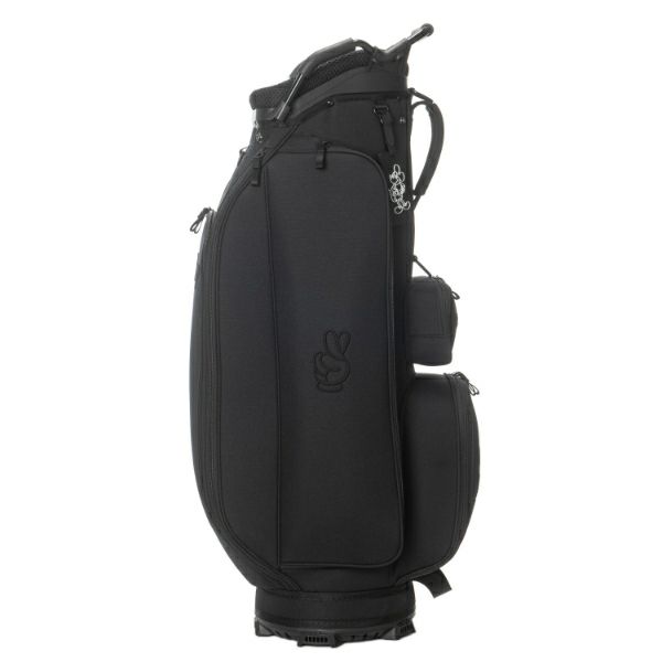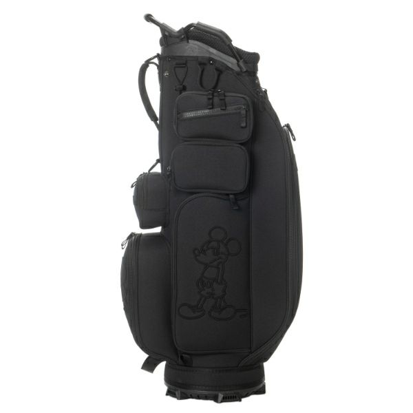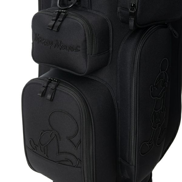 商品説明 ブラックディズニーテーマのオールドミッキーモチーフが際立つ、カジュアルで重厚感あるカートタイプのキャディバッグ。Bigサイズの3Dミッキー刺繍がアクセントで、イエロー基調のロゴ入りライニングが特徴的です。上部から握りやすい金属パイプ口枠仕様で使い勝手も抜群。口枠9型、5分割のセパレーターで整理整頓がしやすく、ポケット9ヶ所も充実した収納力。大人ディズニーファンも満足できるスタイリッシュで実用的なアイテムです。