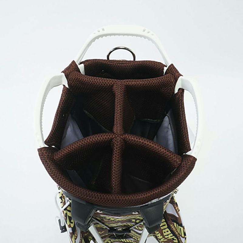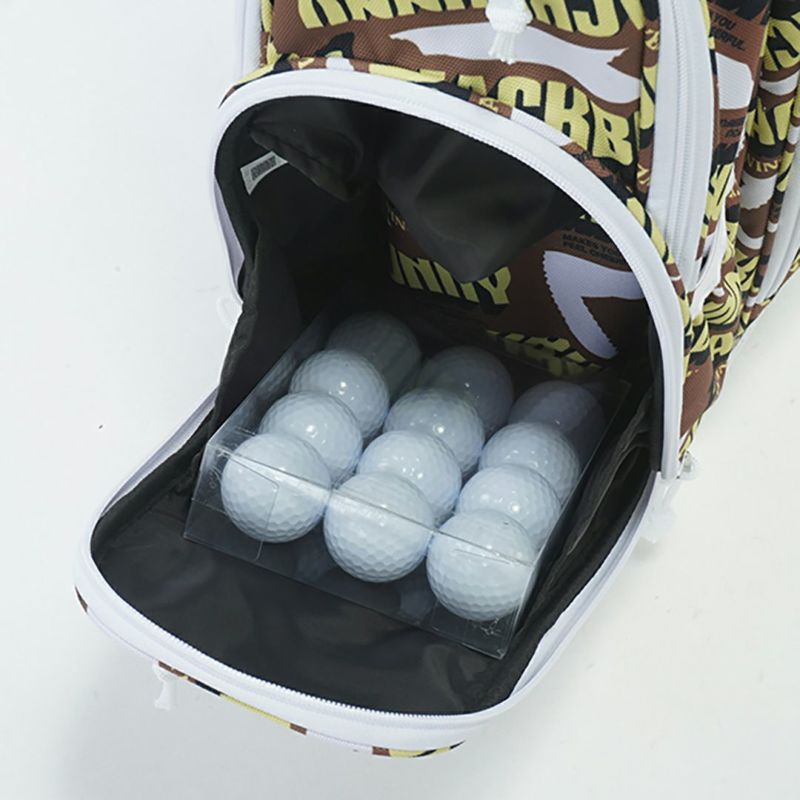 商品説明 コースでも練習場でも大活躍する、46インチ対応パッケージ柄プリントスタンド式キャディバッグ。46インチのクラブの出し入れもスムーズに行え、バランスのとれたクラブ収納を可能にするハンドルと一体化させた5分割の口枠を配置。肩や背中の負担を軽減するショルダーベルトや構造で、いっそうの使いやすさを考え抜いてディテールに拘ったセルフプレーにも最適な仕様です。スタンドバーの破損を軽減するベルクロバンド、スクエア型のネームプレートタグ、機能的な各種ポケットなど、充実の収納スペースを確保した使いやすいバッグに仕上がっています。メーカー品番:262-5980300