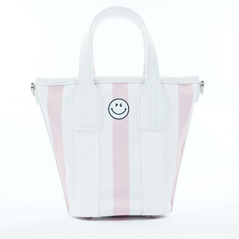 PGの2段ロゴとPG SMILEがさりげないアクセントになった、ショルダーストラップ付きのストライプカートバッグ。ラウンド荷物をまとめて持ち歩ける、ちょうど良いサイズ感のバッグです。ショルダーストラップは長さ調整と取り外し可能なので、シーンやコーデに合わせて好きなようにキャリーできるのもポイント。使い勝手の良いタテ型フォルムがスタイリッシュな、ゴルフはもちろん日常使いしやすい汎用性高めのアイテムです。