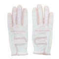 商品説明 バレエのモチーフをデザインに取り入た、細リボン両手グローブ。丁寧にパイピングされた手入れ口のアジャスターに小さなリボンをあしらって可憐でフェミニンな印象を与えた、手元からスタイリングを引き立ててくれるグローブです。掌部は、しっかりクラブを握られるグリップ性に優れた丈夫で扱いやすい天然素材に近い風合いの合皮素材と、甲部はムレを抑える通気性に配慮した肌馴染みの良い吸汗速乾、放湿冷却機能素材のポリエステルを使用。スムーズな着脱とフィット感の良い着用感を実現し、コースをはじめ練習用としてもオールシーズン活用できます。同シリーズで多数ご用のあるカチューシャやソックスなどのリンクコーデも楽しめる、プレースタイルに拘るファッション感度の高いゴルファーにもおすすめのグローブです。メーカー品番:053-5185202