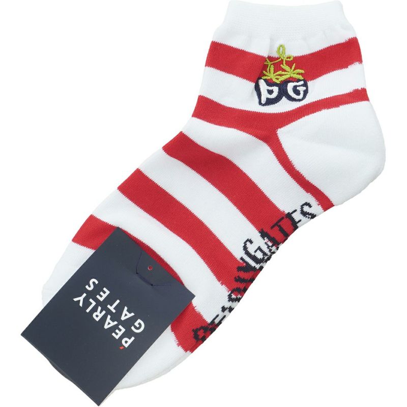 商品説明 GOLF推進団体PEARLY GATES が提案する SUUMMER Golf Vegetarian を表現した、ボーダー柄ショートソックス。鮮度の高いPGを入れたベジタブルなモチーフをあしらった、ボーダー柄のソックスです。つま先から踵まで優しくフィットして、快適に着用できます。ゴルフシーンはもちろん普段ん使いや、旅行やちょっとした外出など、日常のさまざまなシーンで大活躍します。同シリーズのポロやゴルフアクセなどとの、お揃いコーデを楽しむのもオススメです。メーカー品番 5186504 今期一押しのレッドは、「リコピン摂っていつまでも健康でいてね」の一言と共に母の日、父の日に、久しぶりに会うご友人や、還暦を迎える方へのプレゼントとして最適なアイテムです。