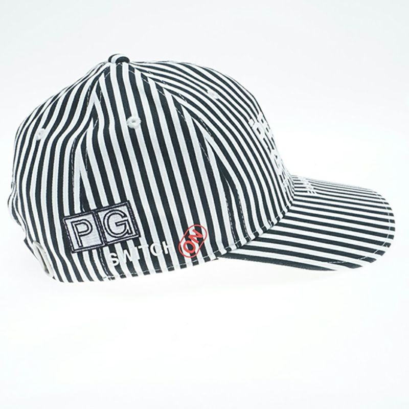 身につけることでより笑顔全開のGolfホリデーをEnjoyできるような、ストライプ柄SWITCH ONリサイクルツイルキャップ。Golfプレー中、何かうまくいかない気持ちがぴえ?んな時にも、PG SMILEのスイッチがSmileのスイッチを入れてくれるアイテムです。コースで立ち往生してしまうようなそんなとてもぴえんな時、サイドに配したスマイルスイッチを押せばが気分はいきなり前向きになります。配色使いのベルクロアジャスターで簡単にフィット感を調節でき、抜群の被り心地を体感できます。ゴルフに、練習に、トレーニングや普段使いにも、日常のさまざまなシーンで大活躍する逸品です。