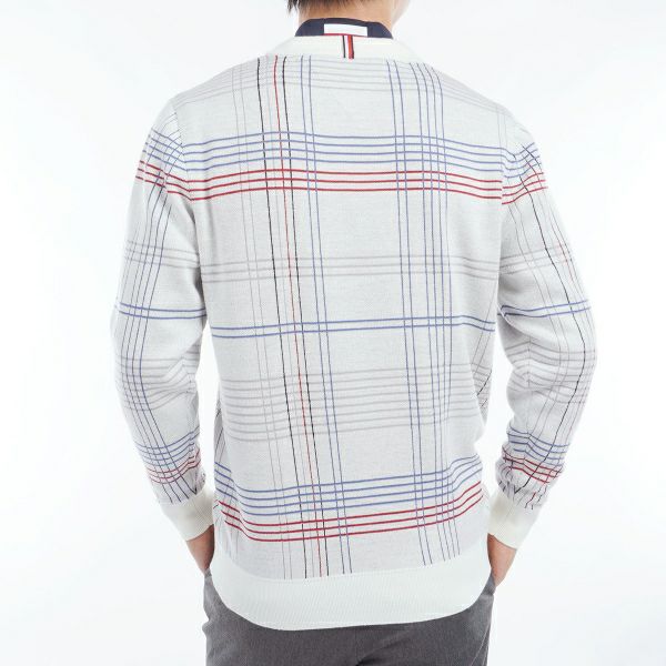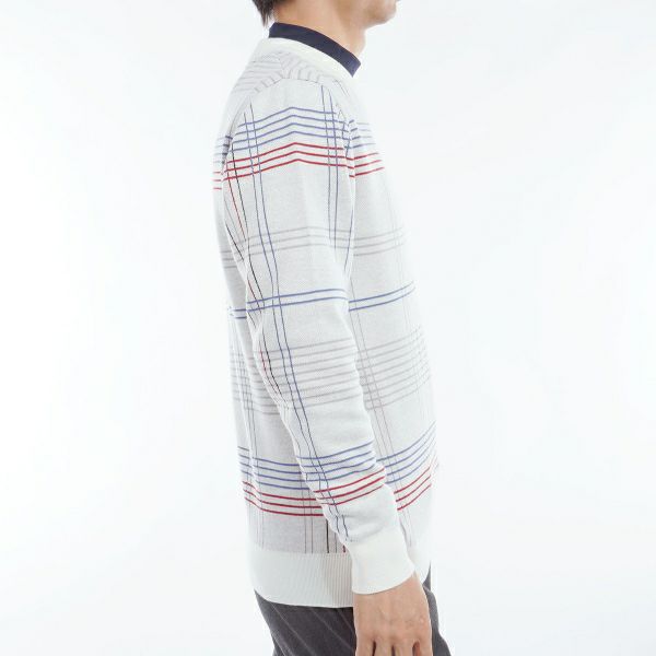 商品説明 ウール混合素材で暖かみのあるチェックジャカートVネックセーター。 Vネックの深さを調整し、モックネックやシャツともスマートに合わせられるようにしました。 肌寒い季節に着用したいアイテムのセーターです。