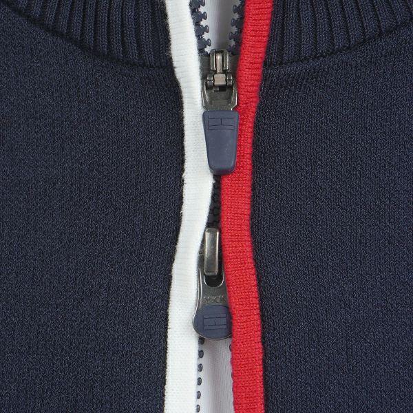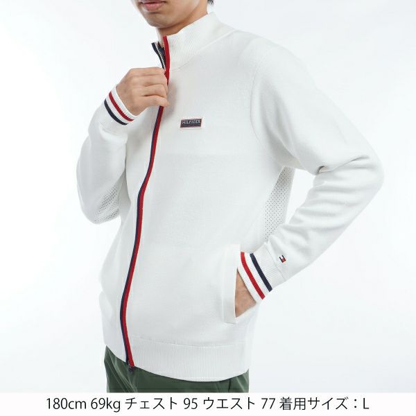 商品説明 起毛感の少ない綿×ポリエステルの糸を使用したトリコロールストライプのフルジップセーター。 ファスナー部分はニットの編み地でトリコロールを表現しています。 フルジップ仕様は着脱も簡単で、サッと羽織ることができるのが便利なアイテム。 起毛感がないため、セーターの着用を始める時期に最適です。