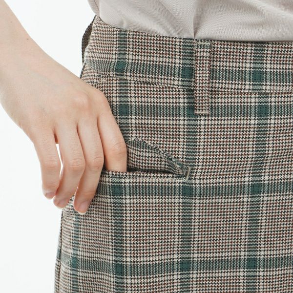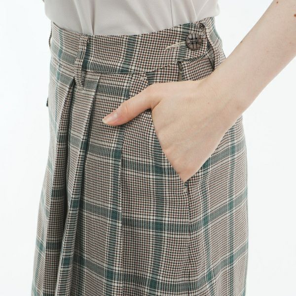 商品説明 レーヨンを混紡した滑らかな素材感の2WAYストレッチ素材を使用。フロントはプリーツを効かせたラップ風のデザイン、バックスタイルはパンツ型で安心感のあるキュロットタイプです。クラシックソリッドカラーと、シーズンレスで使えるチェック柄の展開です。フロントのフラップポケットはなくしやすい小物を収納するのに重宝します。