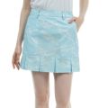 商品説明 撥水性とストレッチ性に優れた軽量タフタを使用。気分が上がるランダムなロゴプリントを全体に施しました。ヒップに沿うスッキリとしたシルエット、裾部分は足さばきの良いプリーツデザインです。ランダムな柄がプリーツを目立たせないので甘くなり過ぎずおすすめです。バックウエストはゴムシャーリング仕様でウエスト回りも締め付けを軽減した、ストレスフリーな着用感です。ADLA431シャツと共通の柄を使用しています。