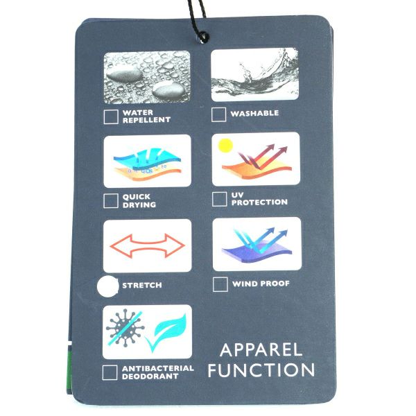 上品な印象のポリエステルツイルを使用。脇ポケット、後ろウエストに入れたブランドアイコンがポイントです。ウエスト後ろはゴムを使用した、ストレスフリーな着心地でプレイにも最適です。