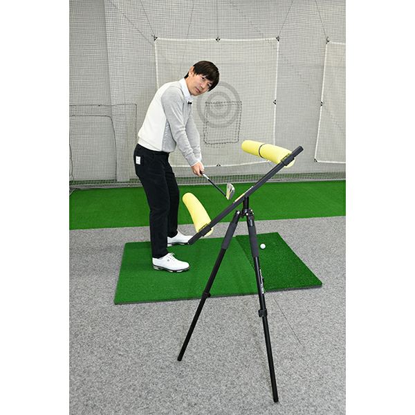 テイクバック、ダウンスイング時にオンプレーン上にクラブを正しく下ろすための練習器具です。