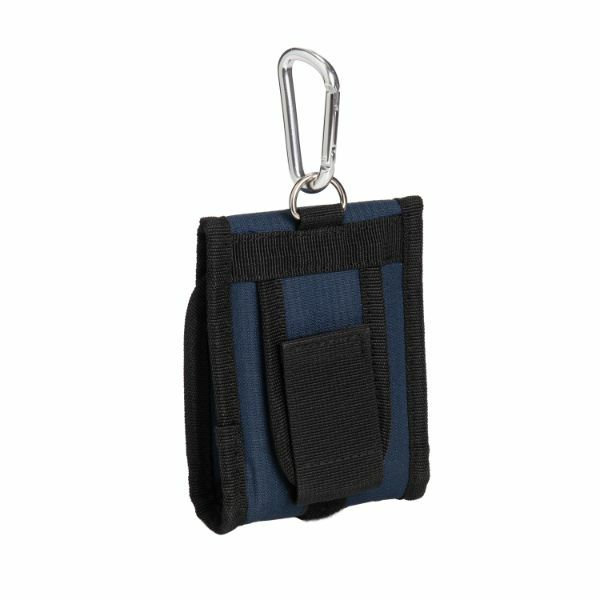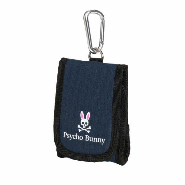 サイコバニーのネイビーと白の定番スコープケース。蓋はベルクロ付きで使用する距離計のサイズに合わせて開閉可能。カラビナ付き。