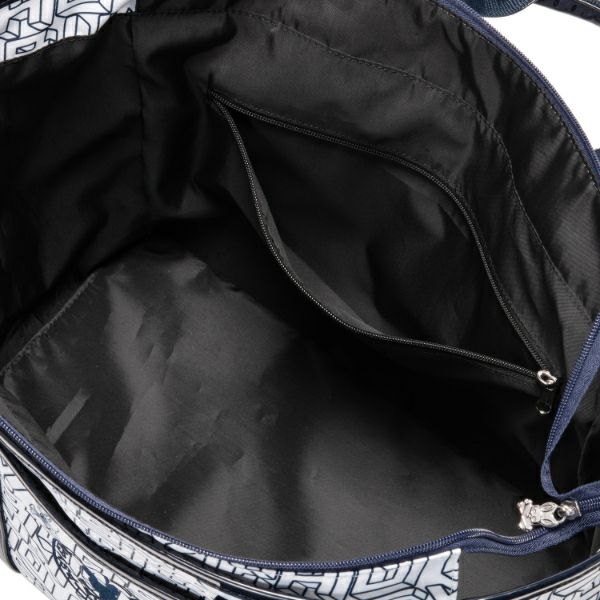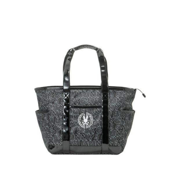 商品説明 個性的なロゴの柄プリントが際立つトートバッグ。ポリエステルツイルとエナメル合皮の組み合わせが特徴で、スタイリッシュなデザインが魅力です。サイズは40x22x36cmで、外側には3つのポケット、内側には1つのポケットがあり、使い勝手も抜群。シンプルでありながら個性的なデザインが、さまざまなシーンで活躍します。