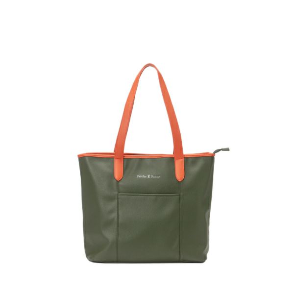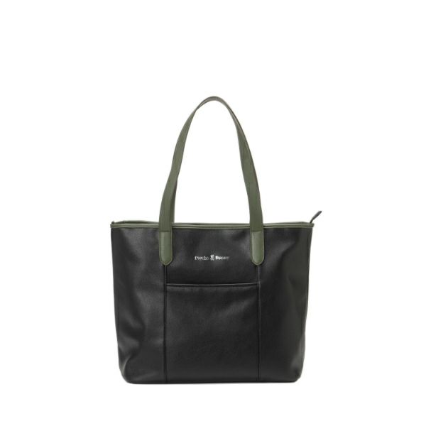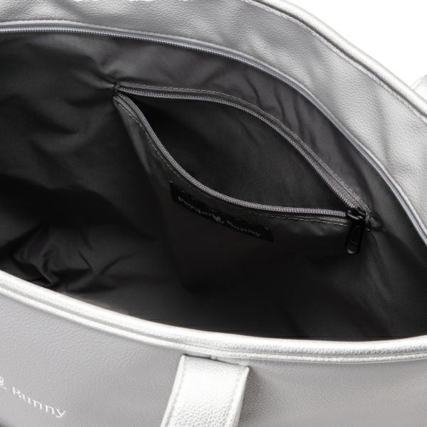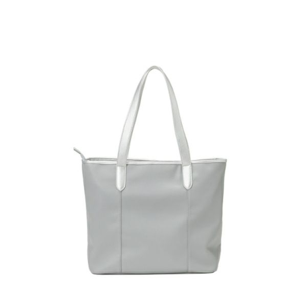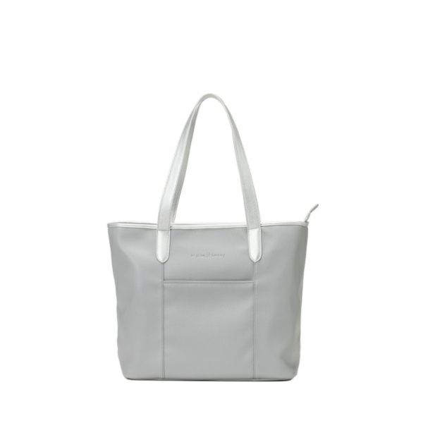 ソフトな合成皮革のトートバッグ。タウンでもゴルフでも使えるデザインで、本体と持ち手の配色が特徴です。