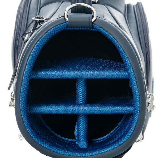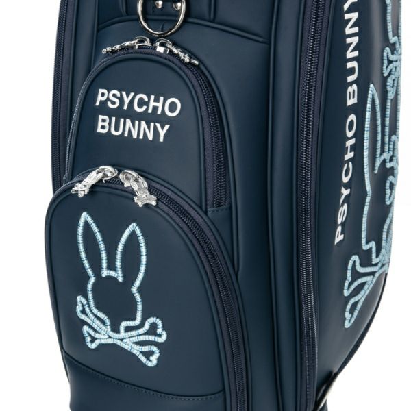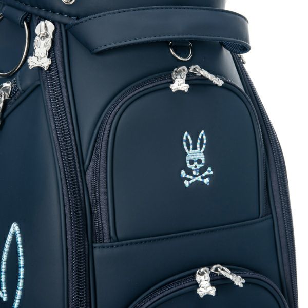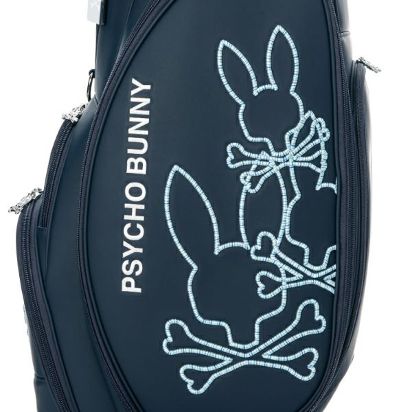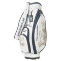 商品説明 シーズナル限定モデルのキャディバッグ。Mix糸を使用し、3D刺繍で表現されたフレームバニーが特徴。ハーフマットな合皮が上品な艶を醸し出します。口枠9型、5分割、セパレーター付きで、ポケットも7ヶ所あり収納力抜群。機能的ながらもシーズナルなデザインが魅力。