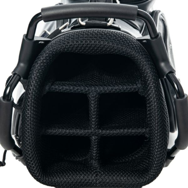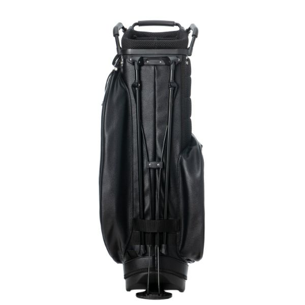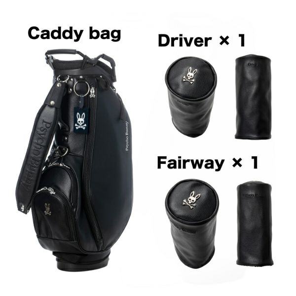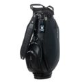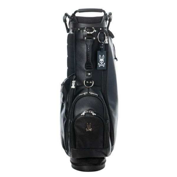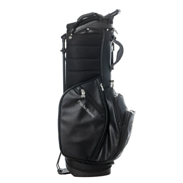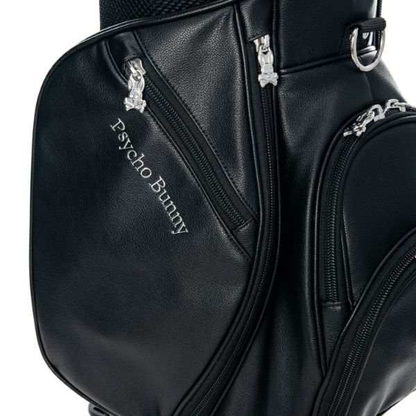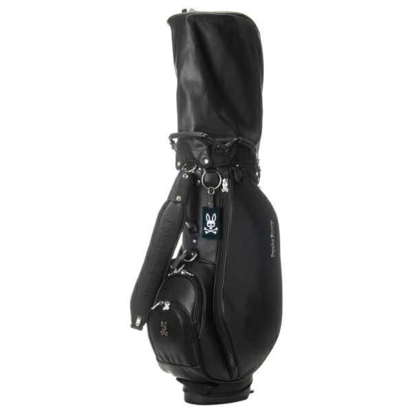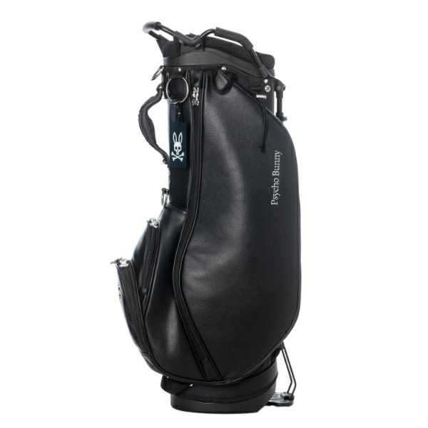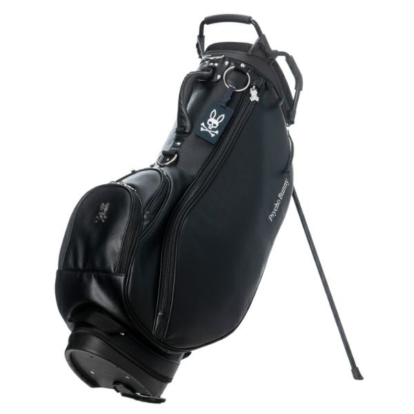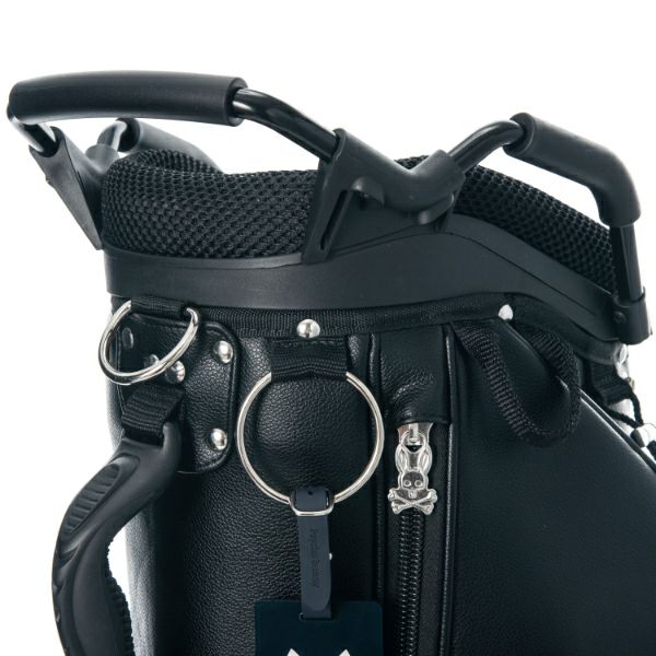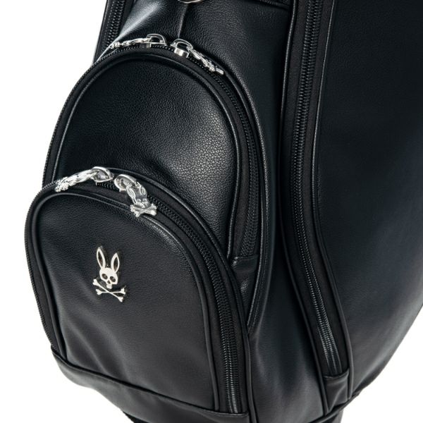 商品説明 高級感あるソフトタイプの合皮を使用したスタンドキャディバッグ。シックなモノトーンのボディにシルバーロゴとメタルバニーが特徴。上部から握りやすい金属パイプの口枠仕様で、口枠9型、4分割、セパレーター付き、ポケット5ヶ所を備えています。ドライバー用ヘッドカバー、フェアウェイ用ヘッドカバーが各1点セットになっています。