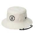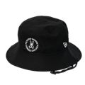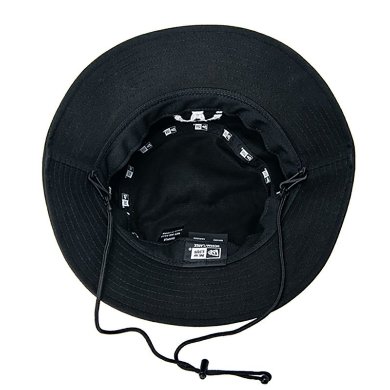 ニューエラとのコラボ商品、コットンツイル生地のアドベンチャーハットです。軽量化と着用時の通気性向上のために、ライニングを取り除いています。刺繍仕様のアイレットと着脱可能なあご紐が特徴です。