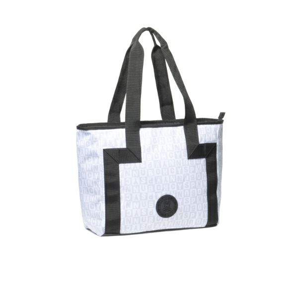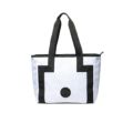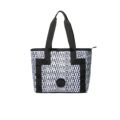 チェッカーフラッグを思わせるモノトーンプリントが特徴。間口が広く荷物の出し入れがしやすい。軽量タイプ。ポケット数:外2、内1