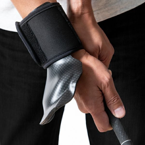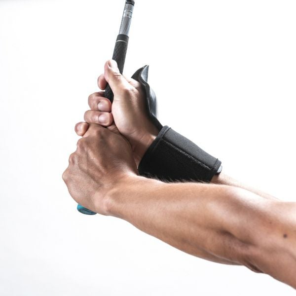 ・右手首の過度な背屈を防ぎ、入射角を安定させます。