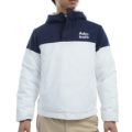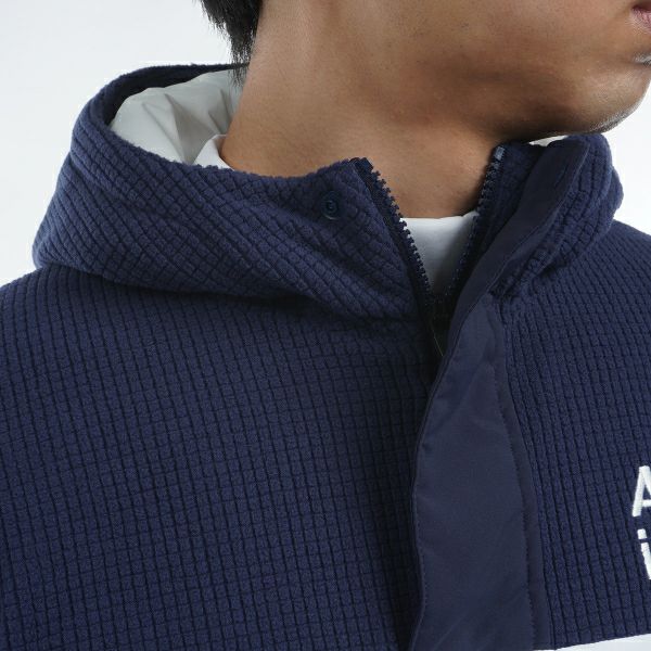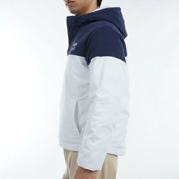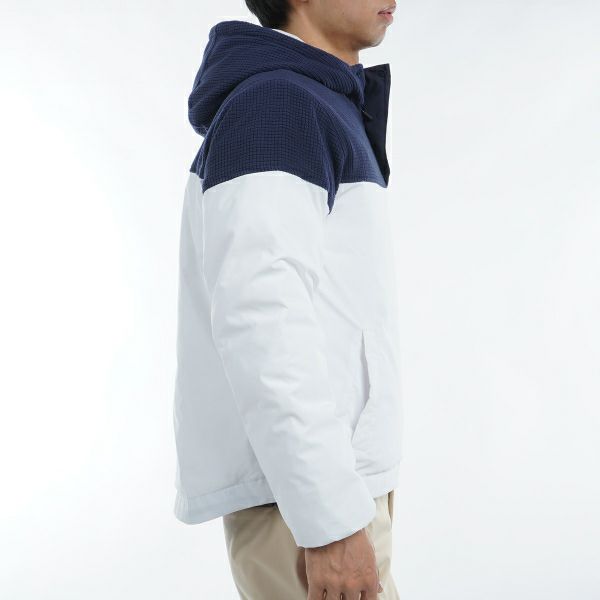 商品説明 撥水加工のタフタ素材と、ブラック型のボアフリースを組み合わせたアノラックジャケット。下部分は軽量の中綿を使用して保温性も抜群です。上部はブロック型のボアフリース素材で見た目にも暖かく、ハーフジップ使いが着脱もしやすいデザインです。