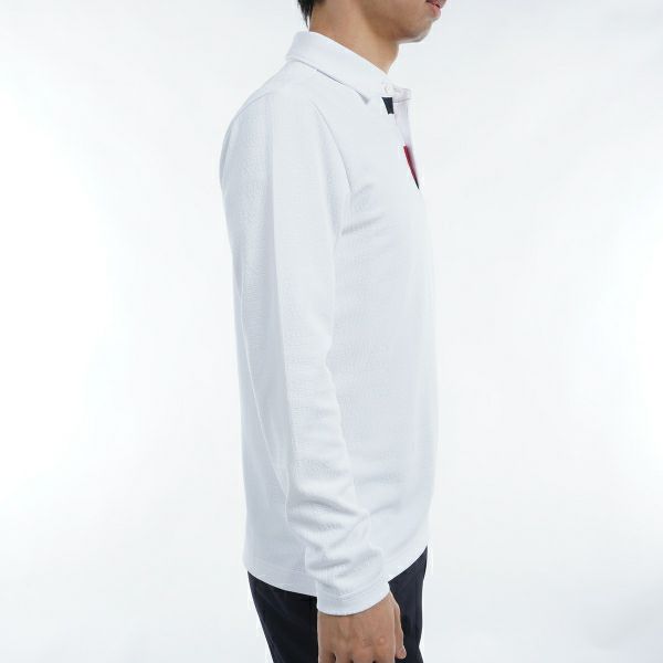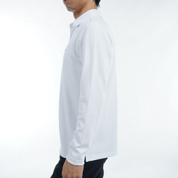 商品説明 北陸産地で編み上げた、モノグラムの凹凸ロゴが特徴のジャカート長袖シャツ。 吸水速乾性、UVカット機能、抗菌防臭加工を施しており、快適な着心地を提供します。 下前立のシグネチャーストライプがアクセントです。