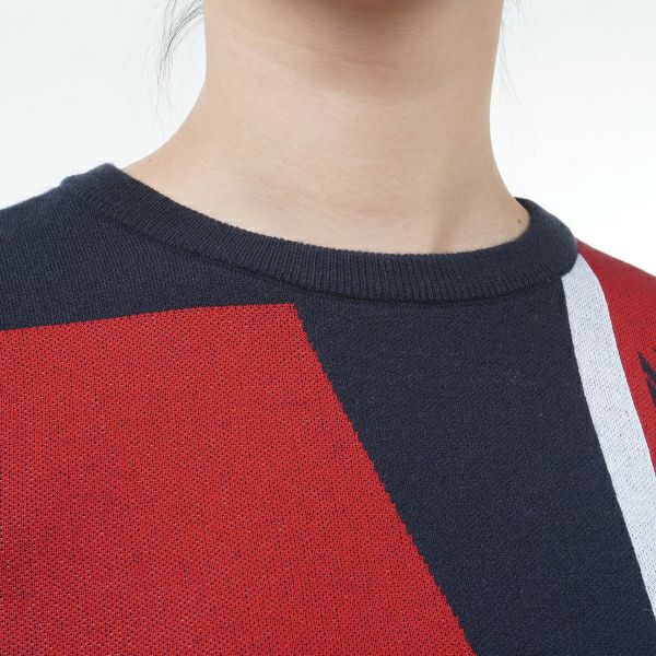 商品説明 ダイナミックなパネルデザインのジャカードニットは、トレンドのレトロでエモーショナルな気分を盛り上げてくれるデザイン。遠赤外線を放出し、保温性、 軽量、 ソフトな風合いが特徴の「ホットレイ」を使用。